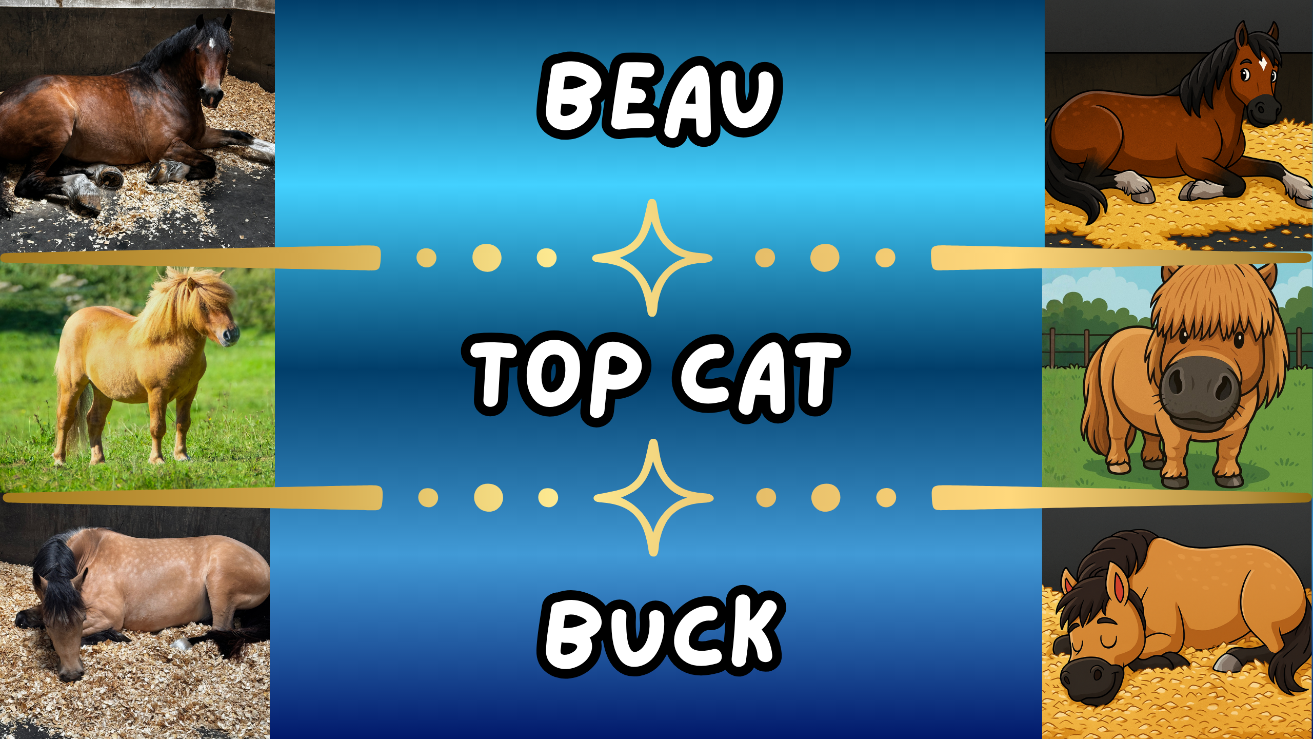- AVC Dressage themed merchandise featuring Beau, Top Cat, and Buck for fans who've followed our journey